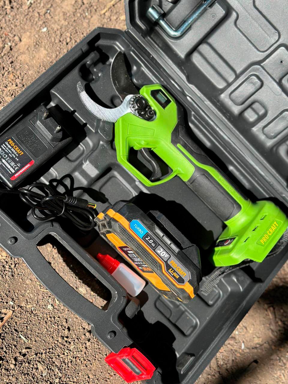 Акумуляторний Секатор PROCRAFT оснащений безщітковим двигуном і високовуглецевими лезами, що забезпечують високу ефективність і довговічність. Він легко справляється з обрізанням молодих пагонів і тонких гілок, забезпечуючи стабільну роботу навіть під час інтенсивних завдань.